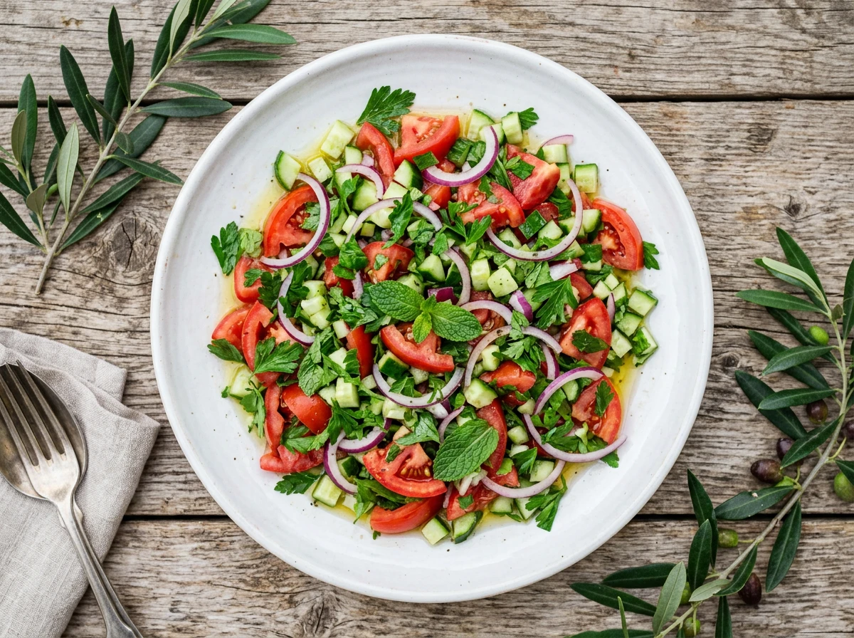- Den Salat 15–20 Minuten bei Zimmertemperatur ziehen lassen, damit sich die Aromen verbinden.