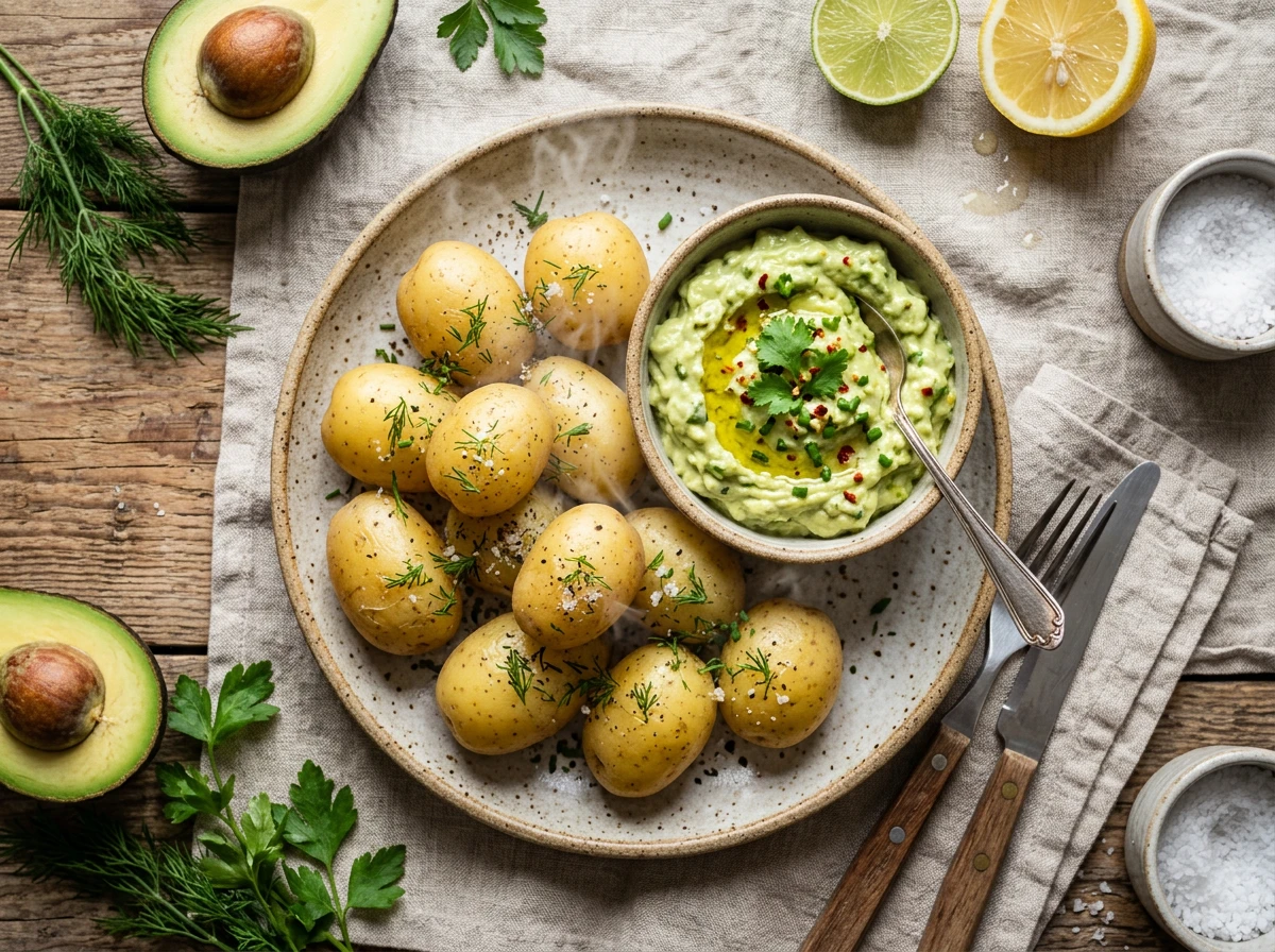 Avocadodip mit neuen Kartoffeln