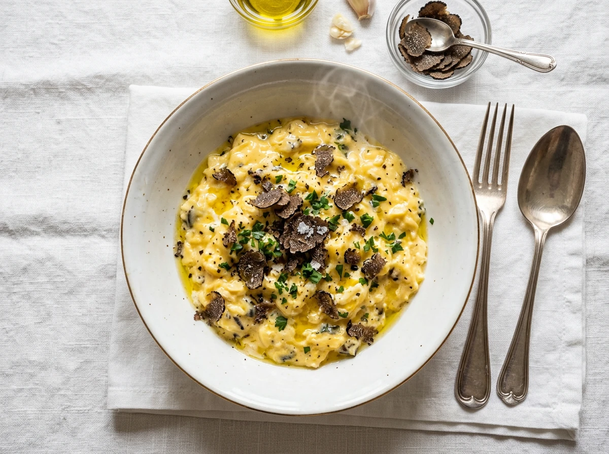 - Vorsichtig herausnehmen und sofort servieren; nach Wunsch mit etwas zusätzlichem Pfeffer oder einem Hauch gehobelter Trüffel garnieren.