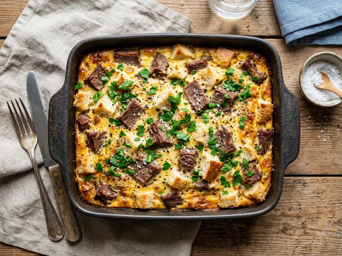 - Im vorgeheizten Ofen 30–35 Minuten backen, bis die Oberfläche goldbraun und der Auflauf durchgegart ist. Vor dem Servieren 5 Minuten ruhen lassen.