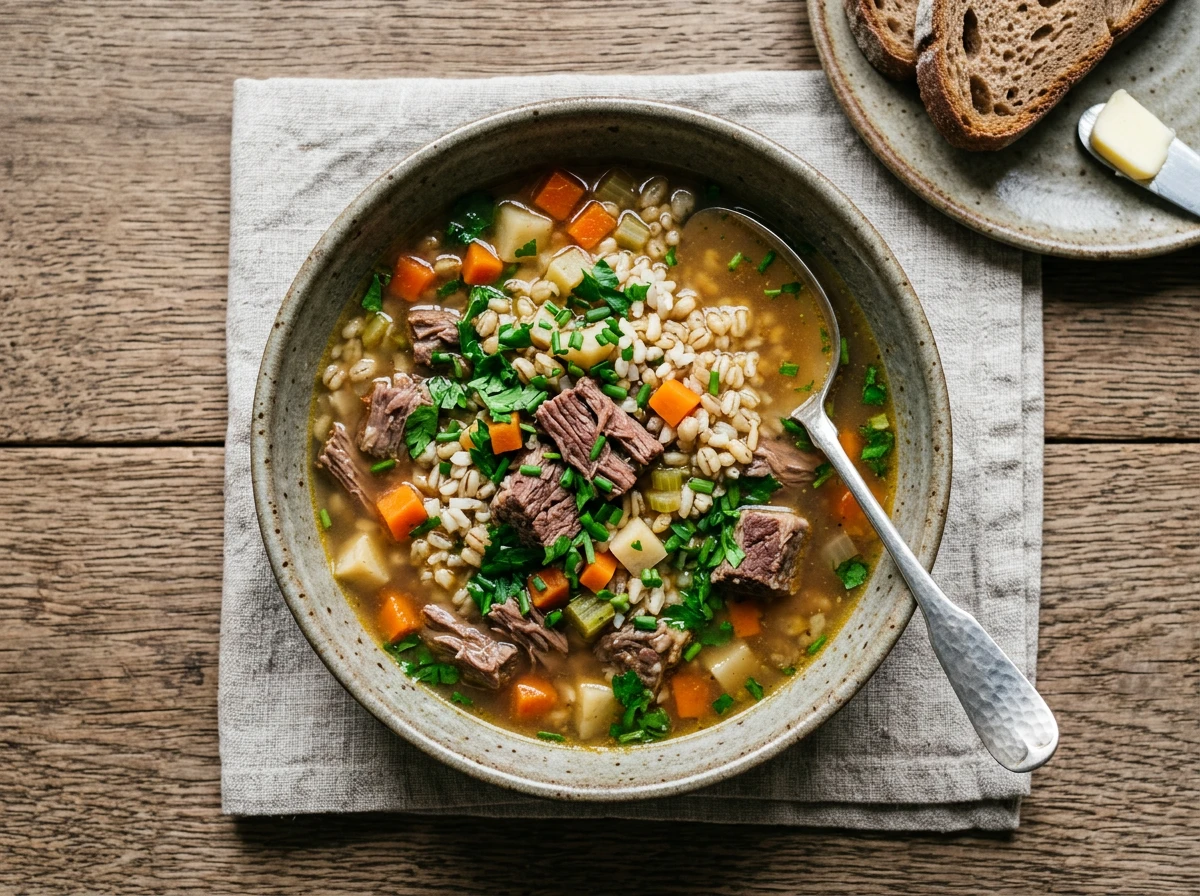 Rindfleischsuppe mit Perlgerste und Reis