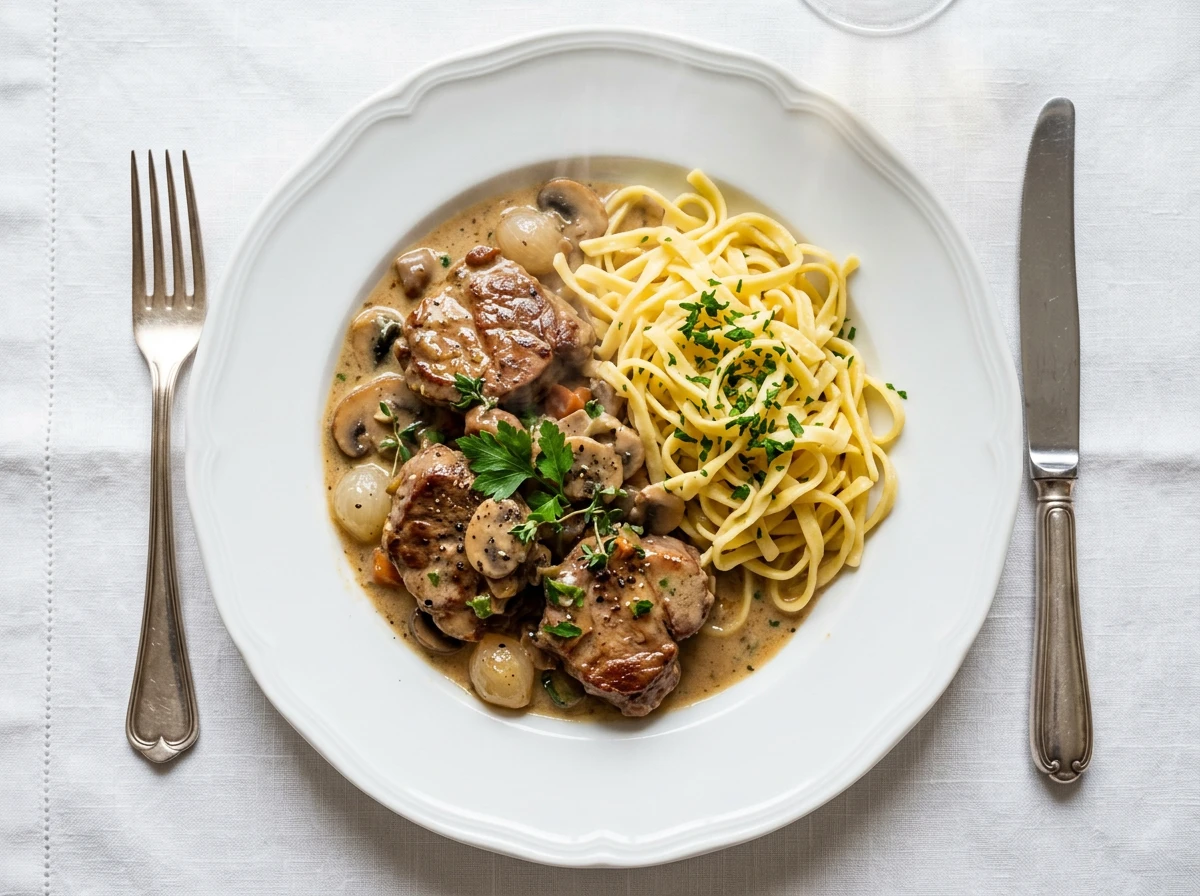 Sauté de veau mit hausgemachten Butternudeln