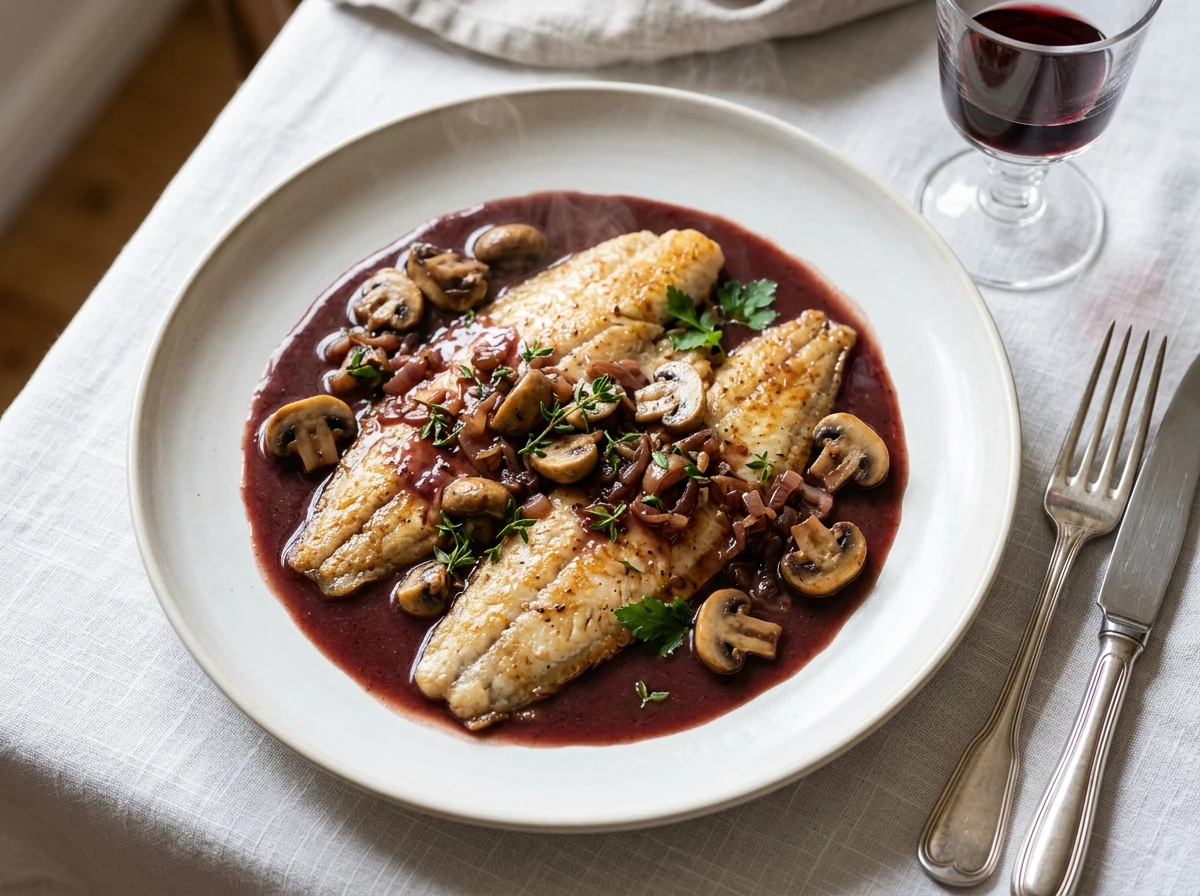 - Die Filets mit der Rotweinsauce, den Champignons und etwas frischer Petersilie anrichten und sofort servieren.