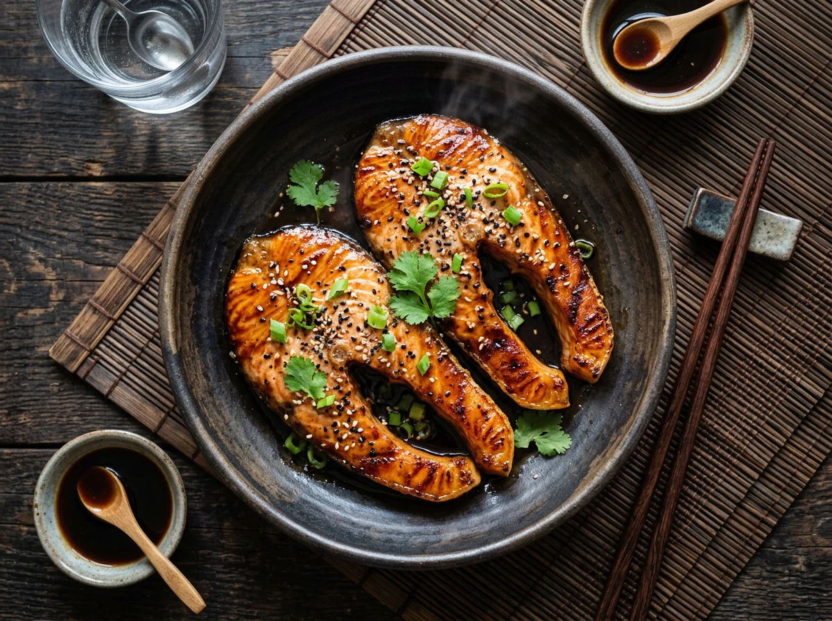 - Die Marinade kurz abschmecken; sie sollte süß-salzig mit leichter Ingwer-Knoblauch-Note sein.