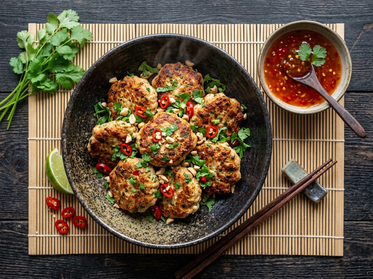 Thailändische Hähnchenküchlein mit süßer Chilisauce