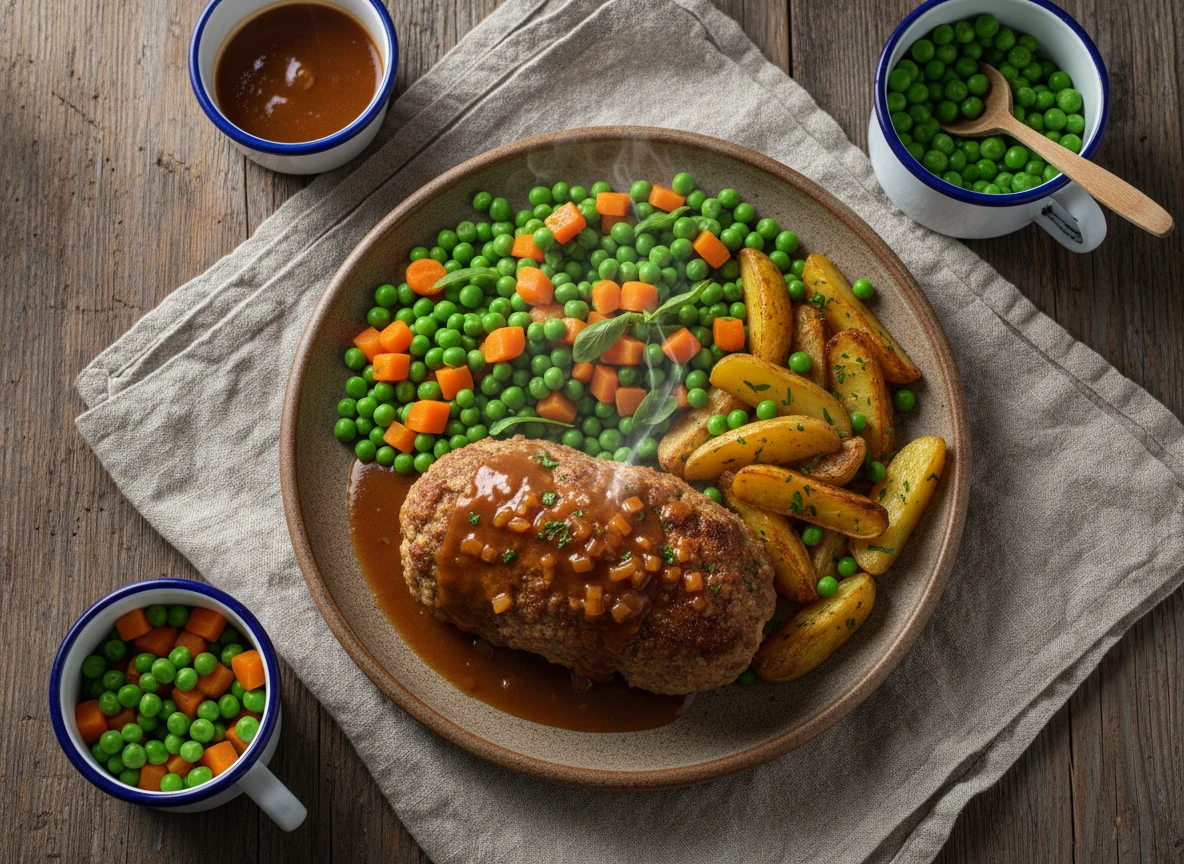 Faux Hase avec Sauce Brune et Pois Carottes