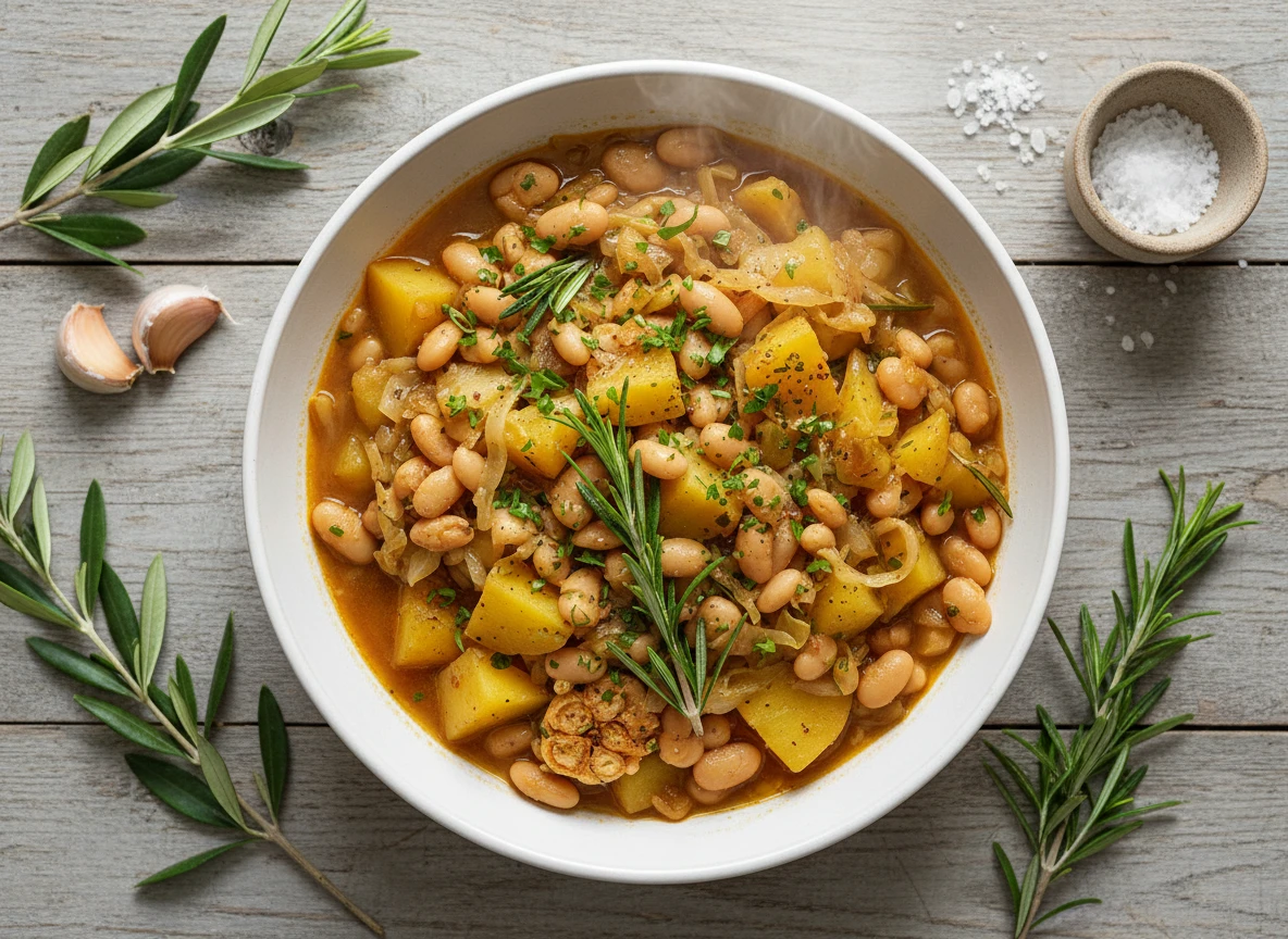 Potée de haricots blancs et chou avec romarin et pommes de terre au citron