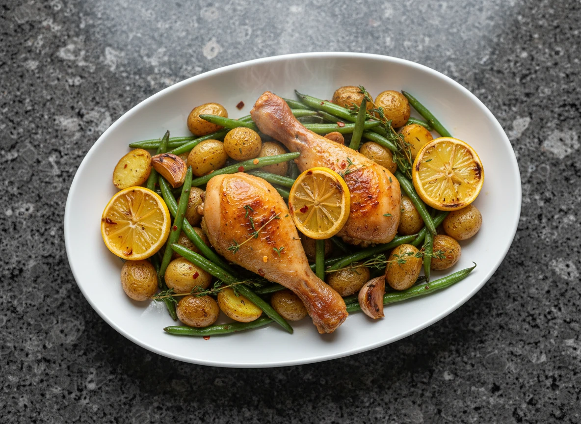 Poulet au Citron avec Pommes de Terre Rôties et Haricots Verts