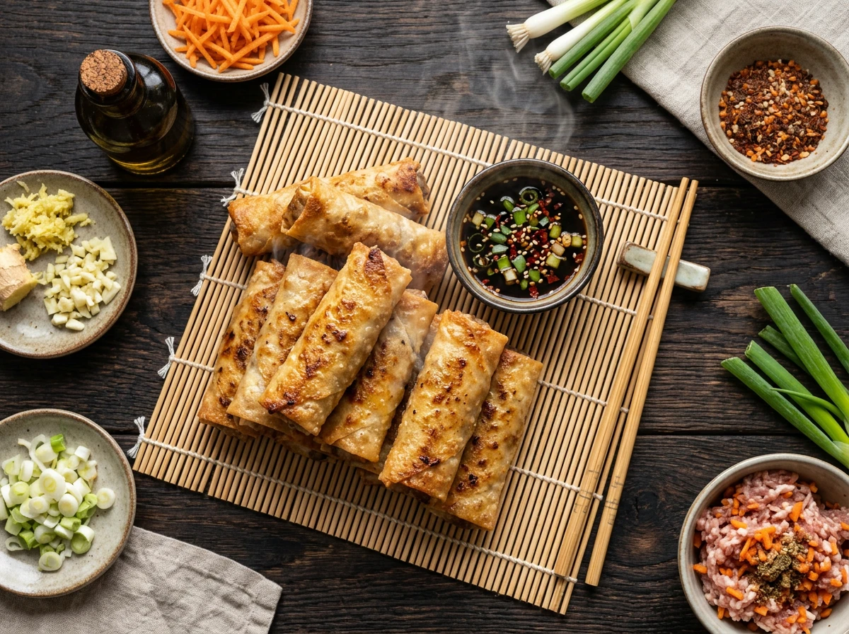 - Porter l'huile à environ 177 °C et frire les rouleaux 3–4 minutes de chaque côté jusqu'à dorure.