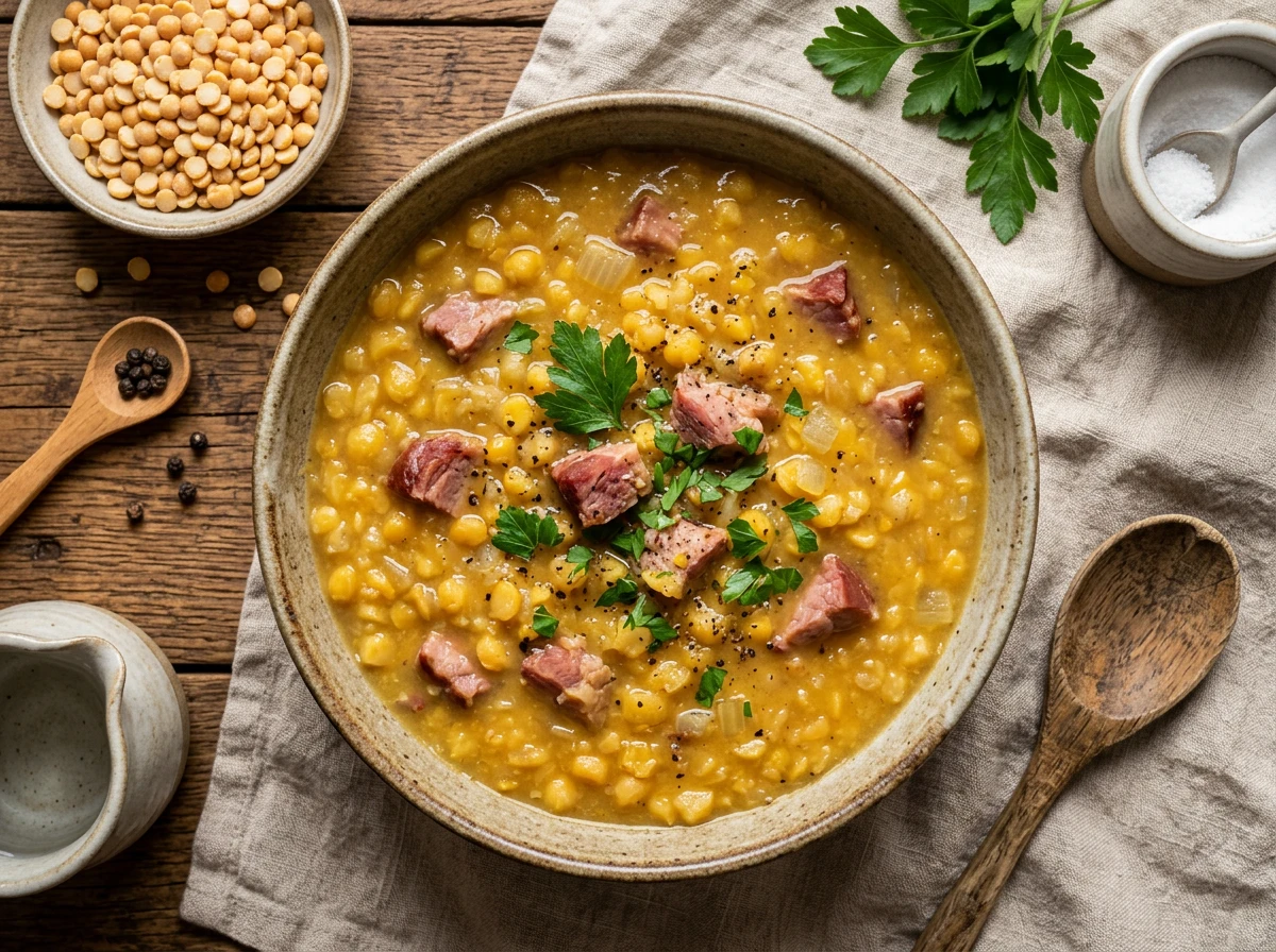 Soupe de pois (pois cassés jaunes au porc fumé)