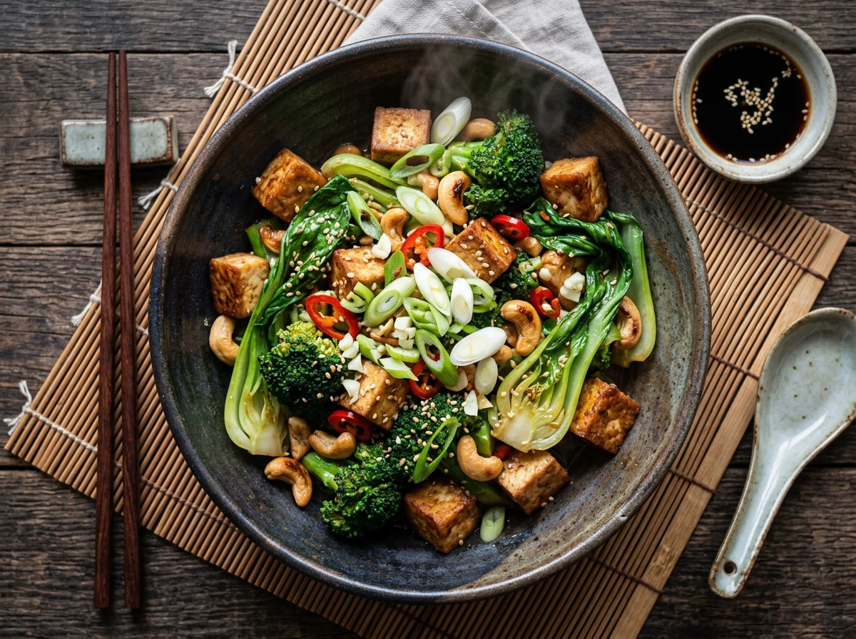 Tofu sauté aux légumes et noix de cajou