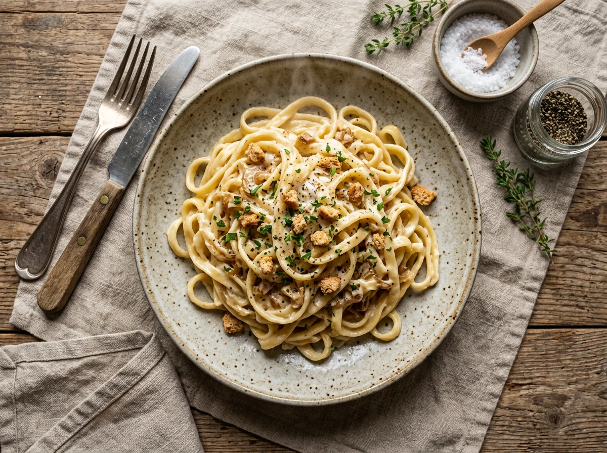 - Passer rapidement les pâtes égouttées dans le lait chaud pour qu'elles s'imprègnent (1–2 minutes).