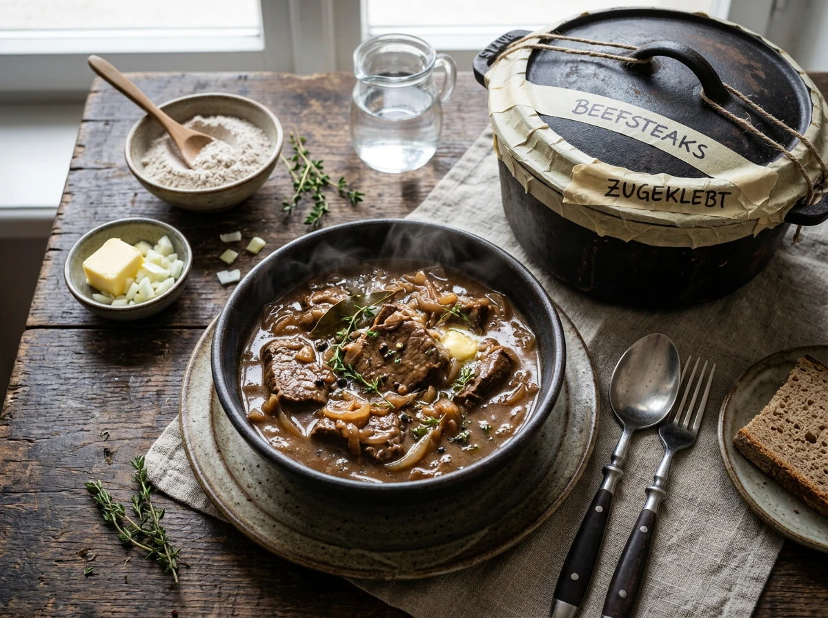 - Pat the beef steaks dry and lightly pound them if needed (about 1–2 cm thickness). Season both sides with salt and black pepper.