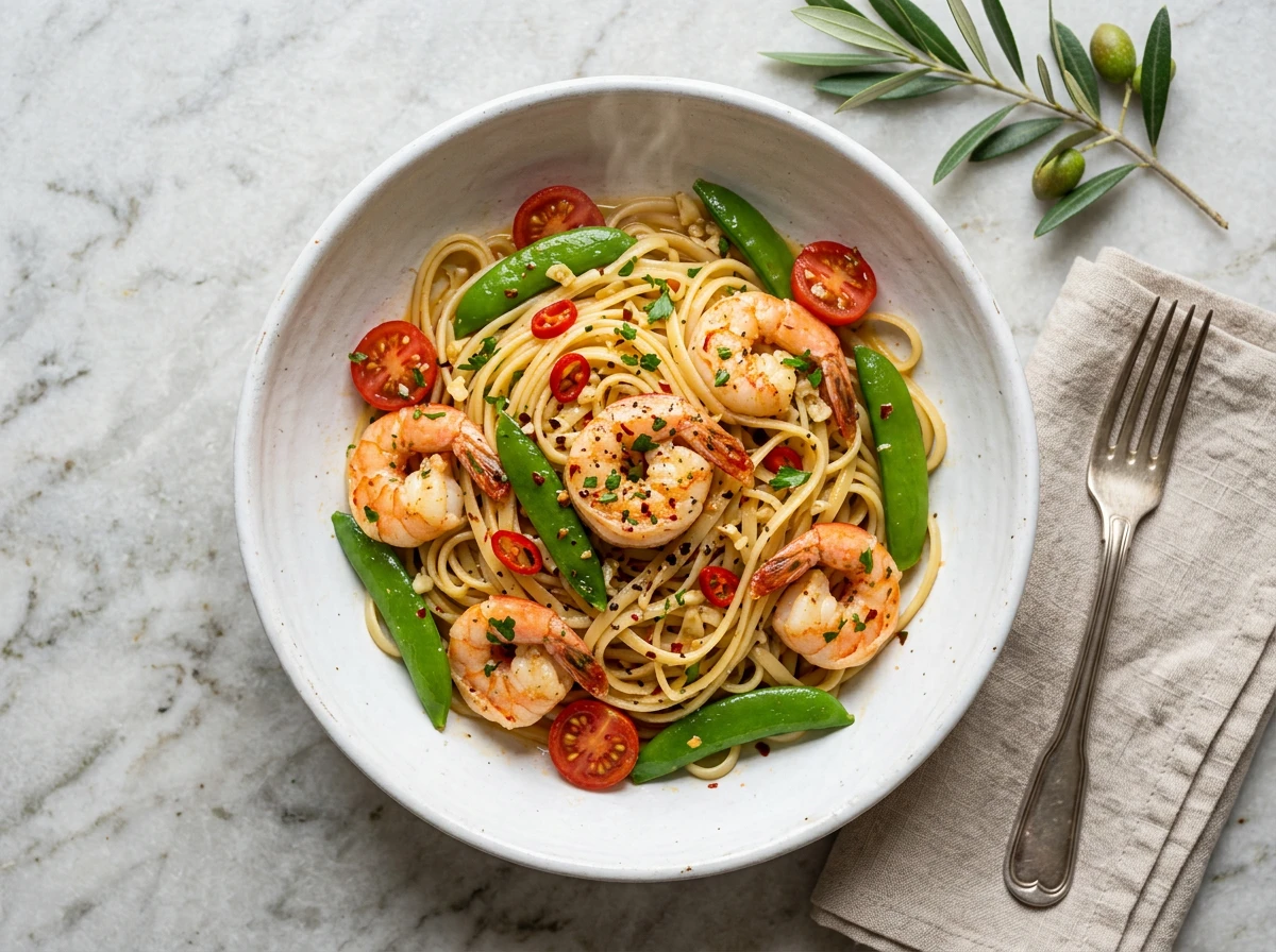Shrimp Scampi Angel Hair Pasta with Lemon and Pine Nuts