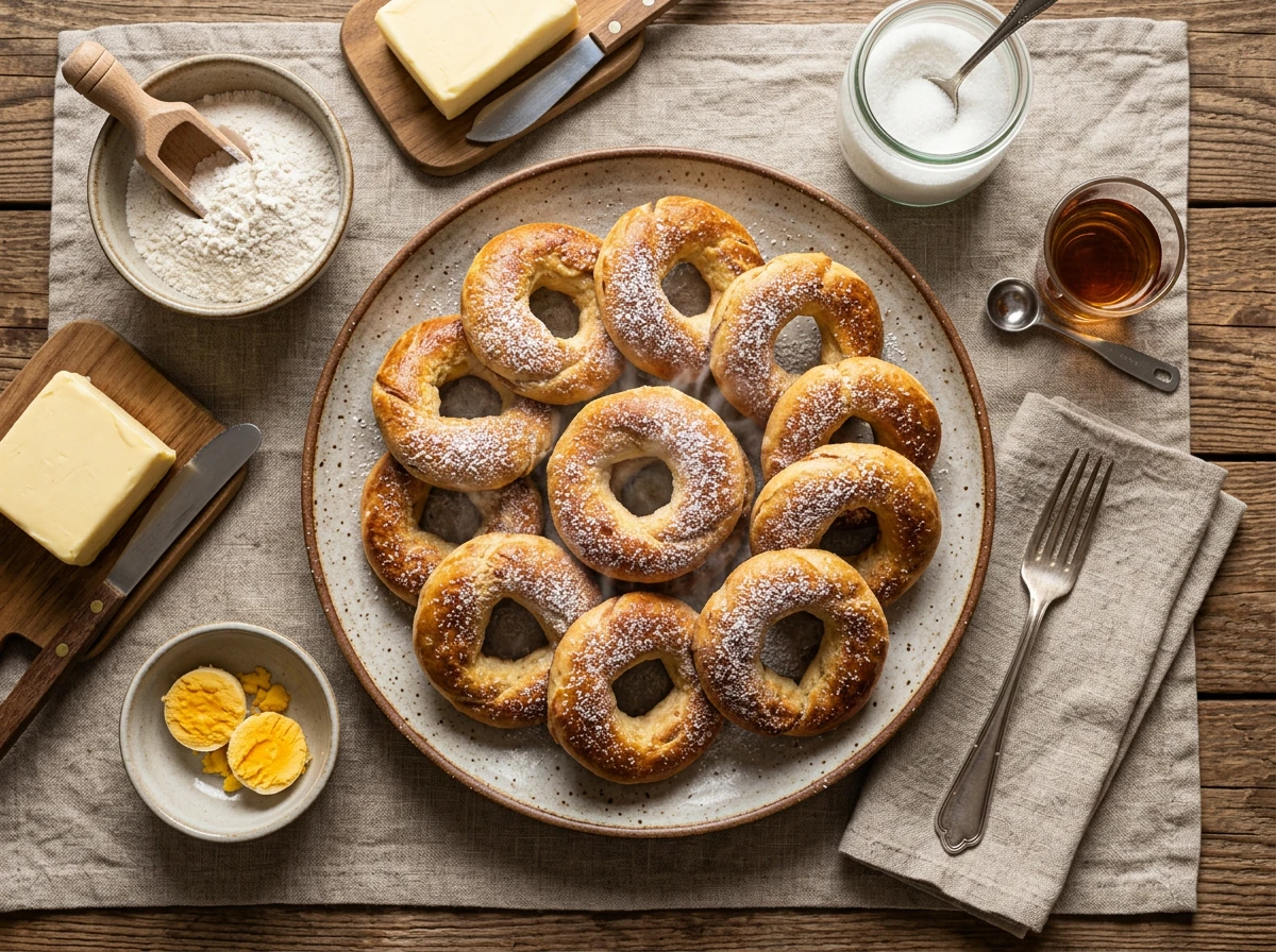 - Place rings on the prepared sheet (allow space) and bake in the preheated oven at 190 °C for about 10–12 minutes until the edges are lightly golden.