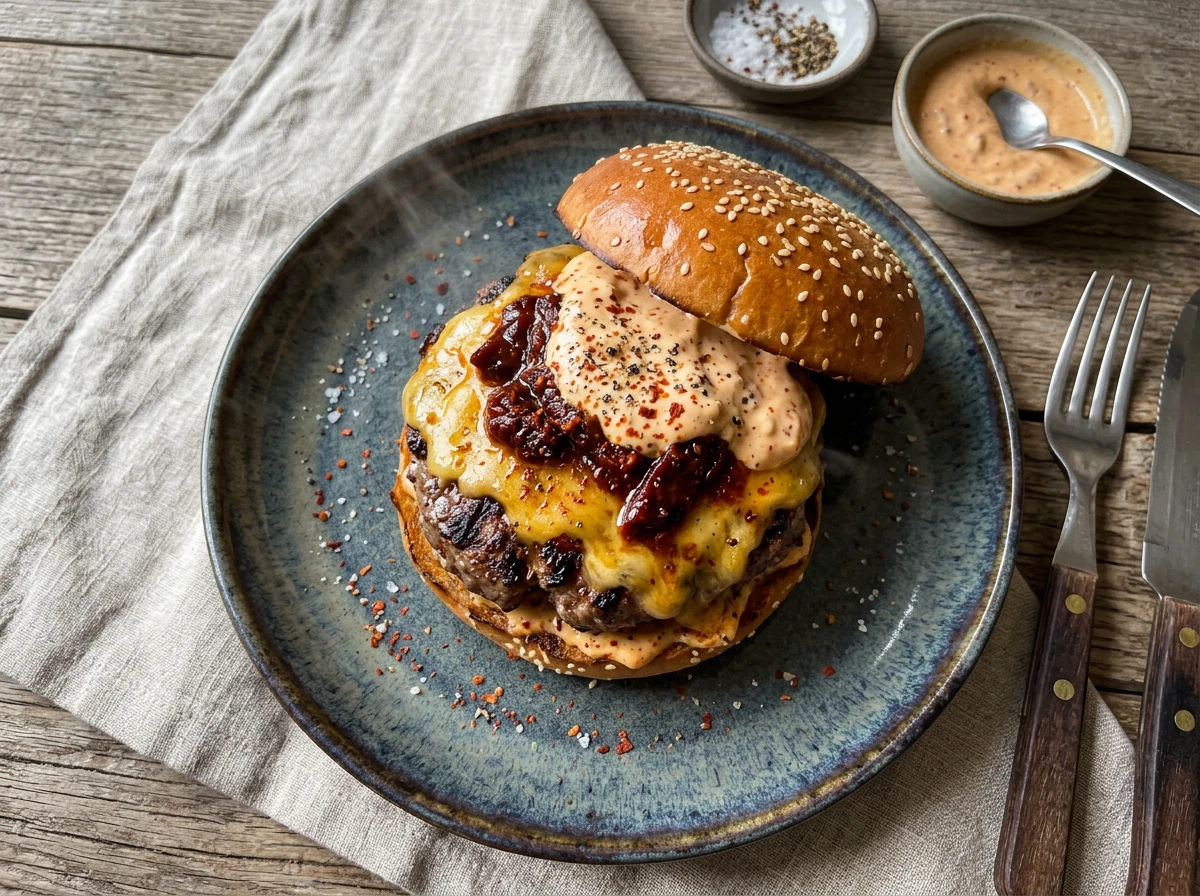 - Place a patty on each bun, top with 2 slices of crispy bacon and a spoonful of chipotle mayonnaise.