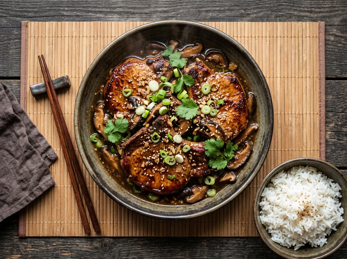 Garlic Pork Chops with Shiitake