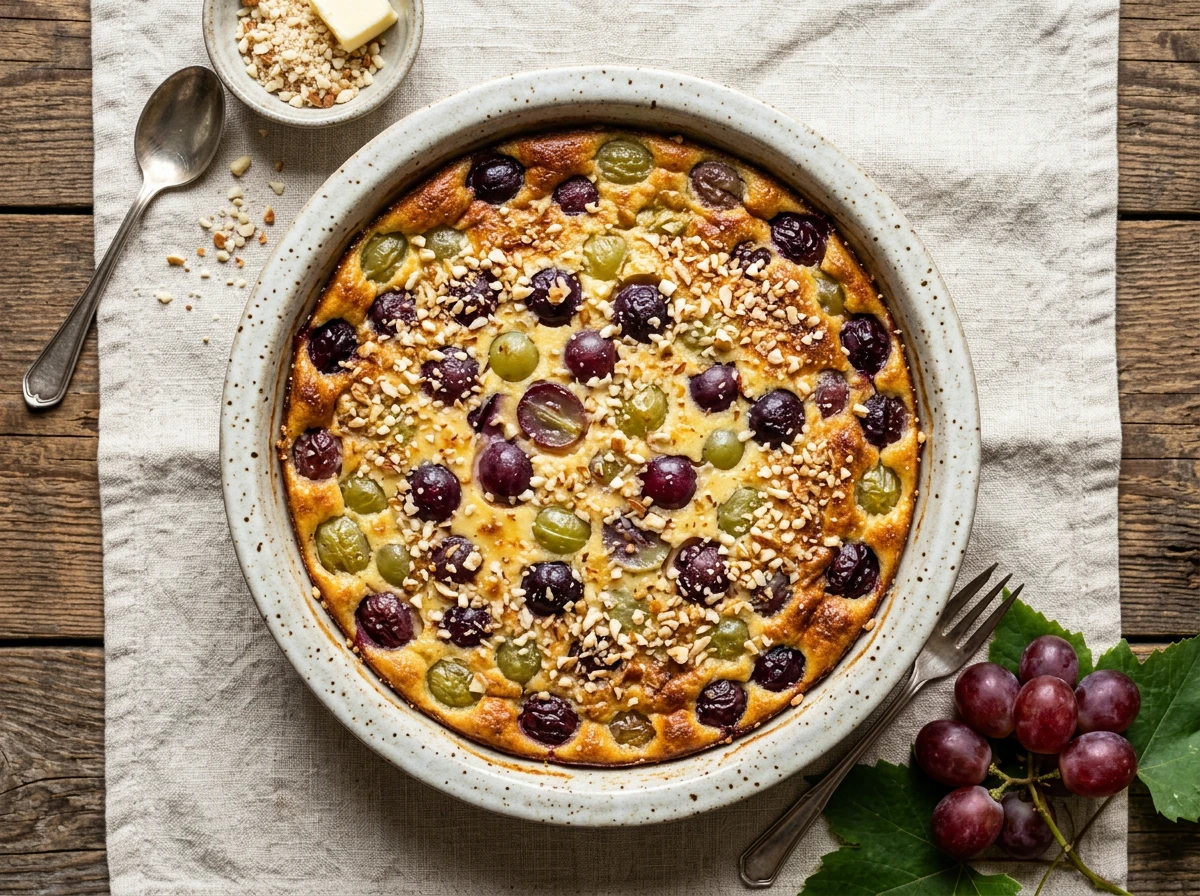 - Wash and stem the grapes, halve if large, and fold into the batter.