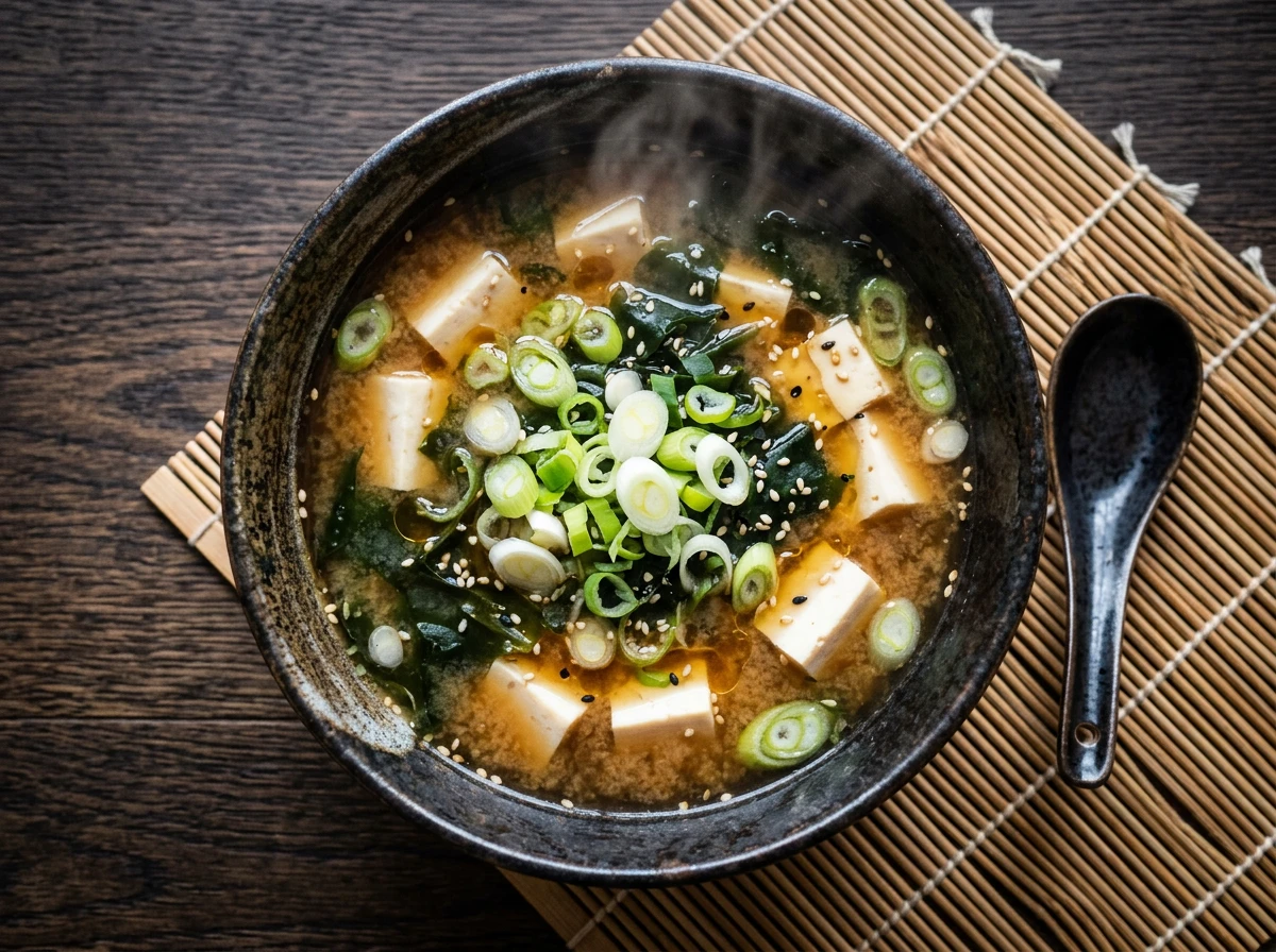 - Add tofu, mushrooms, seaweed and optional shrimp and let simmer gently for 2–3 minutes (do not boil).