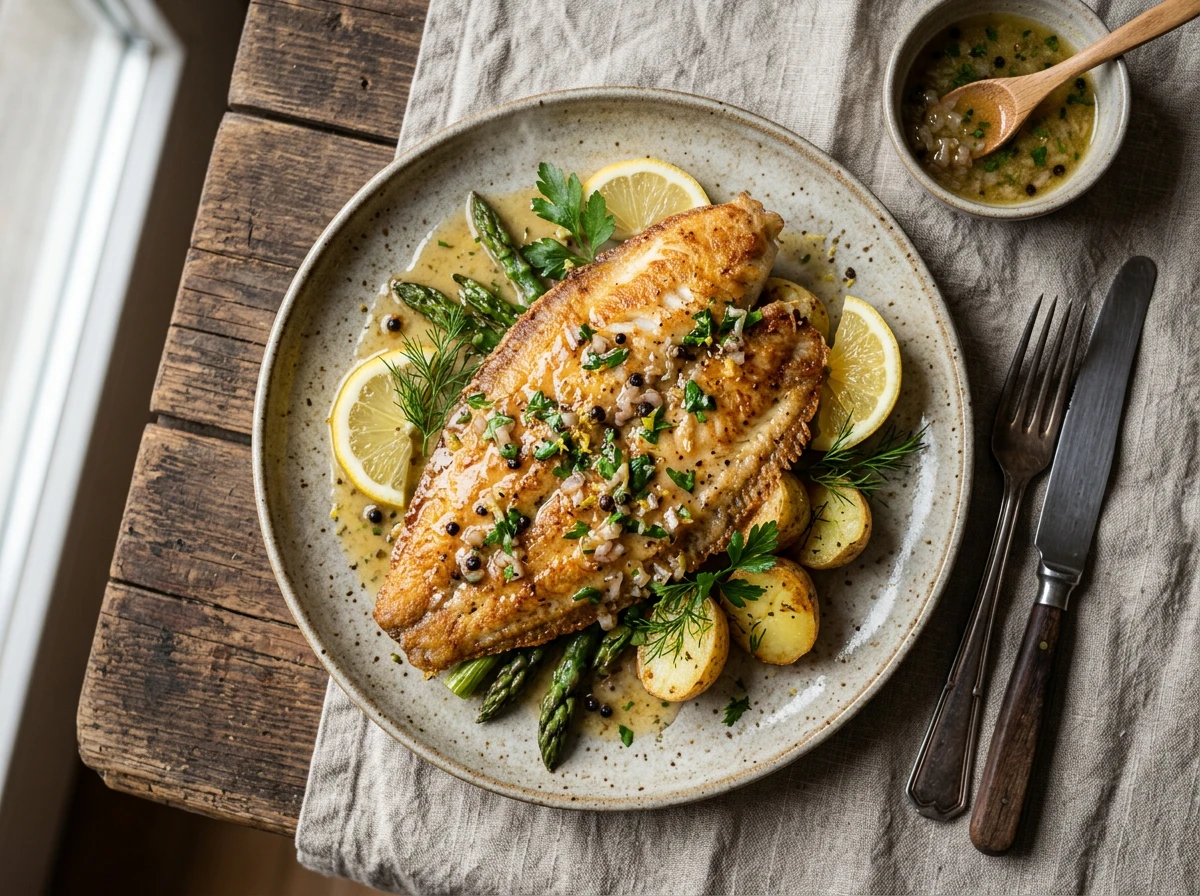 - Drizzle additional lemon-butter over the fish and garnish with parsley if desired.