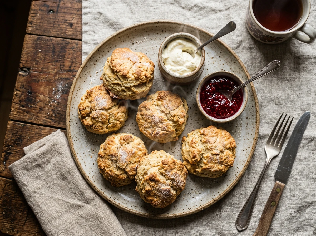 - Place rounds on the baking sheet and re-roll scraps to cut more scones.