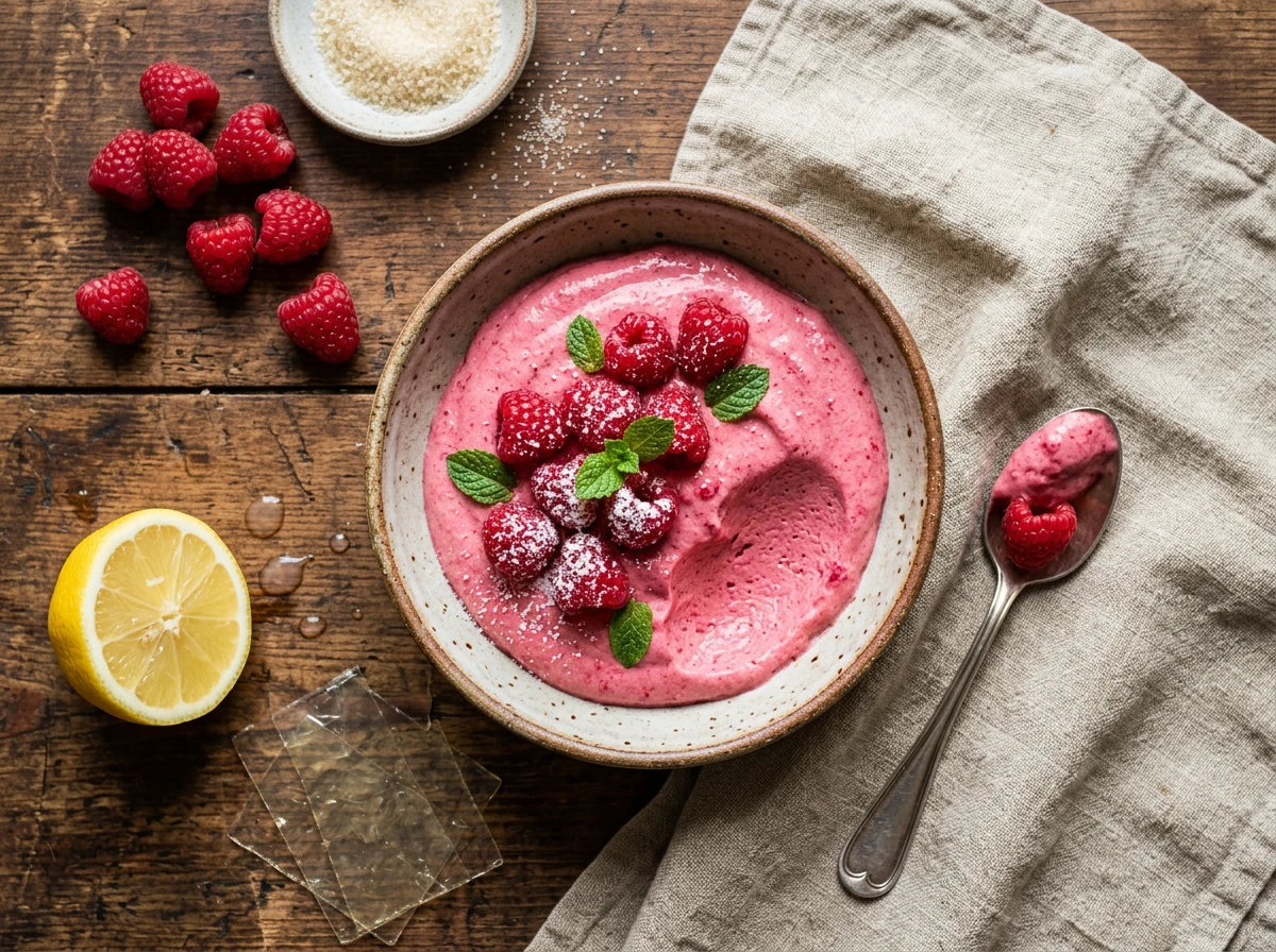 - Gently fold the whipped cream into the cooled raspberry purée until combined and airy.