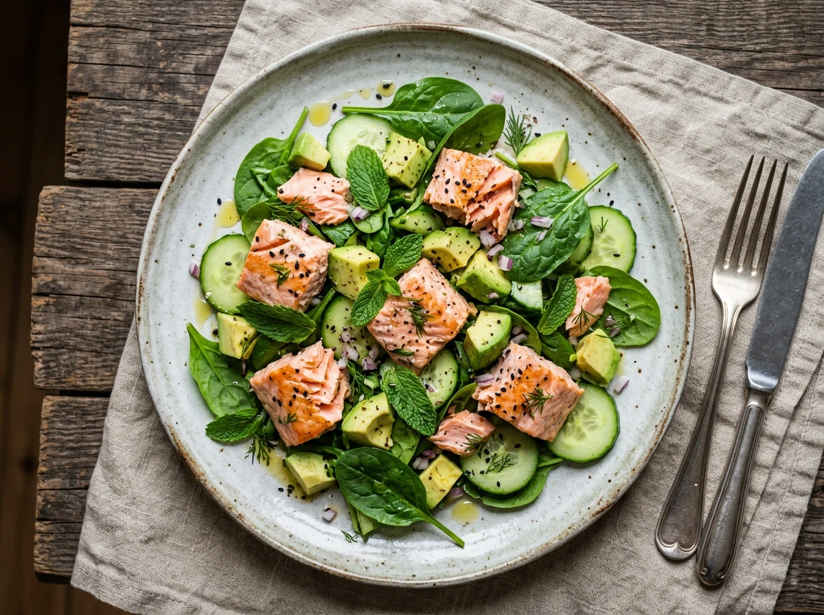 - Heat a non-stick pan over medium-high heat. Fry the salmon 3–4 minutes per side until skin is crisp and the inside remains moist.