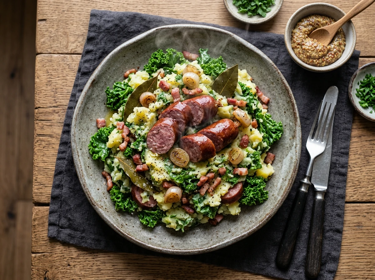Stamppot (Kale mashed potatoes with smoked sausage)