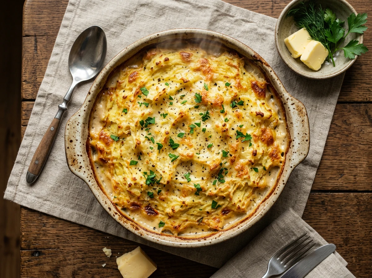 - Bake for 30–40 minutes until lightly golden and bubbling at the edges. Rest 5 minutes before serving.